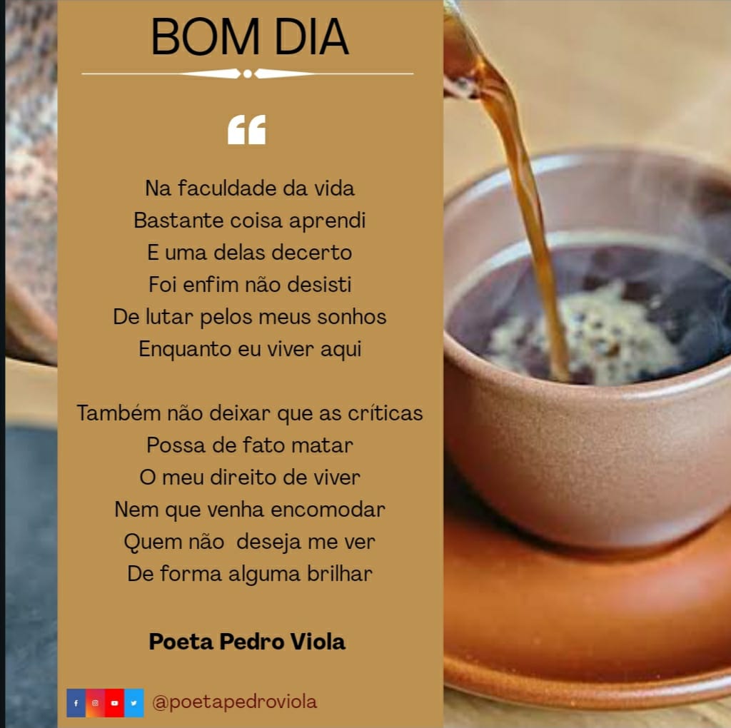 SEGUE ABAIXO ALGUNS DOS POEMAS DO POETA PEDRO VIOLA POSTADOS DIARIAMENTE EM SEU INSTAGRAM, CONFORME LINK: